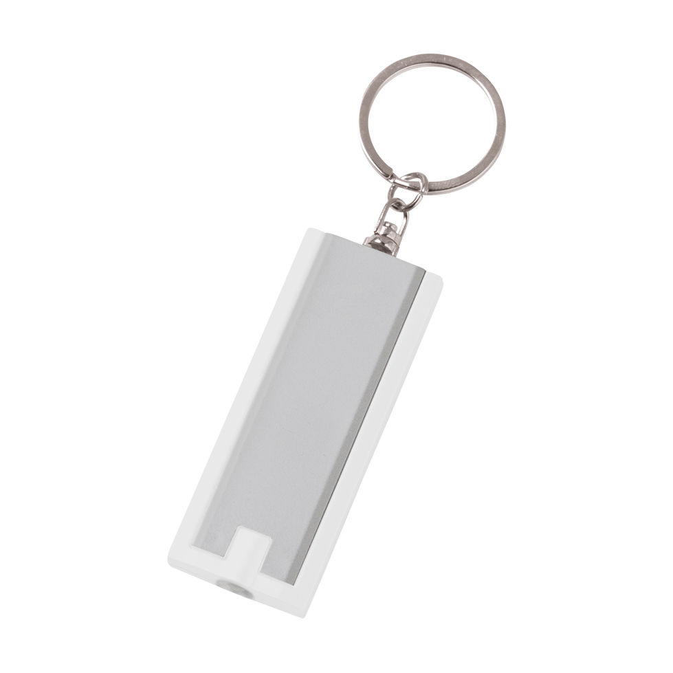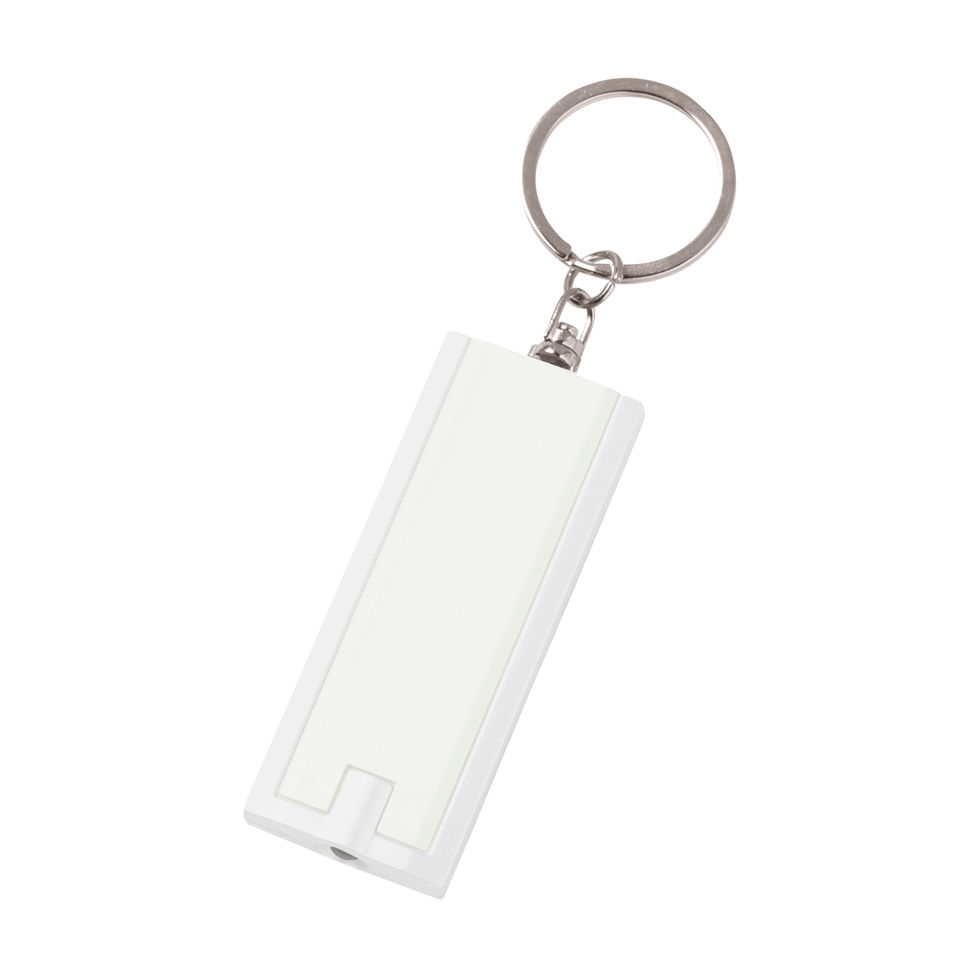 FlatScan Keyringt. Bright white LED key light with push button. Split metal keyring. Batteries included. ABS plastic.