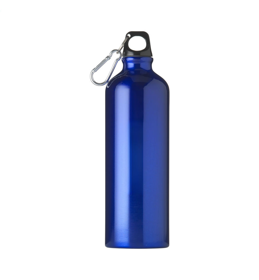 WoW! Single-walled water bottle with a body made from 100% recycled aluminium. With high gloss finish, plastic screw top with keyring and metal carabiner. The carabiner is not to be used for climbing. Leak proof. Not dishwasher-safe. GRS-certified.
