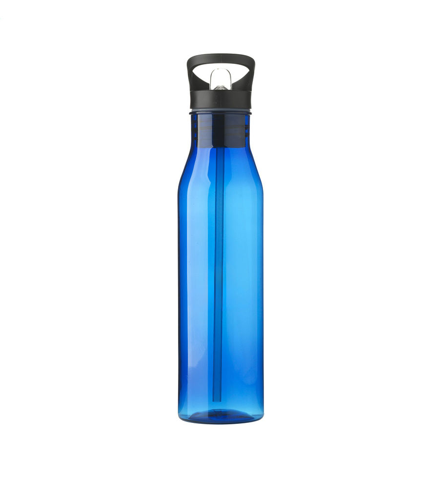 WoW! Water bottle with transparent body from RPET. The screw cap has a collapsible mouthpiece and sealable straw, allowing you to keep your head straight while drinking. This way you can take a sip whilst also keeping your eyes on the road while driving.
